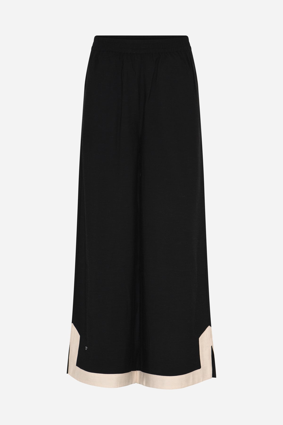 510HMNikas bukser er brede bukser med elastisk talje, markeret kontrastkant og et roligt, flydende fald, der giver silhuetten et afbalanceret, grafisk udtryk.