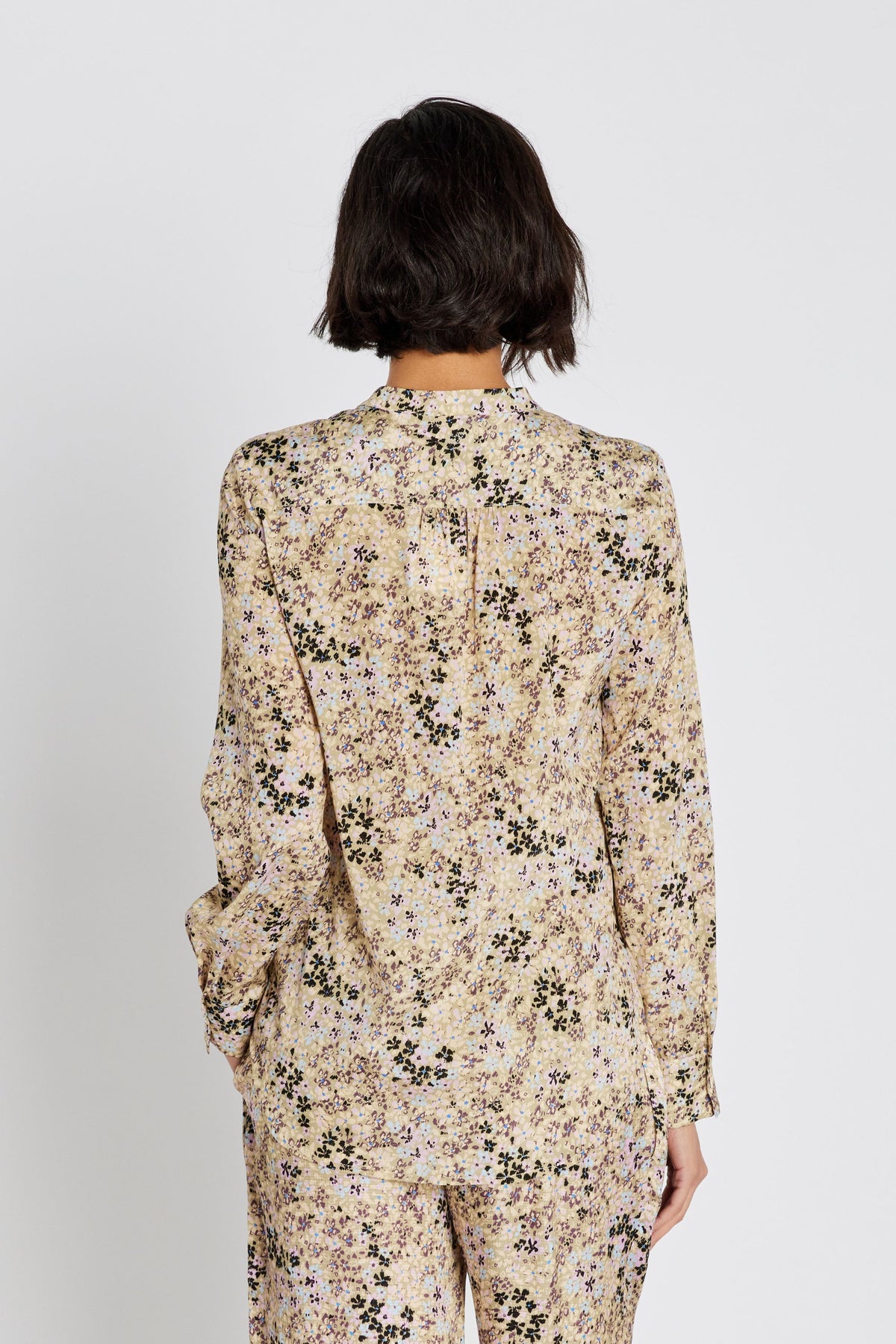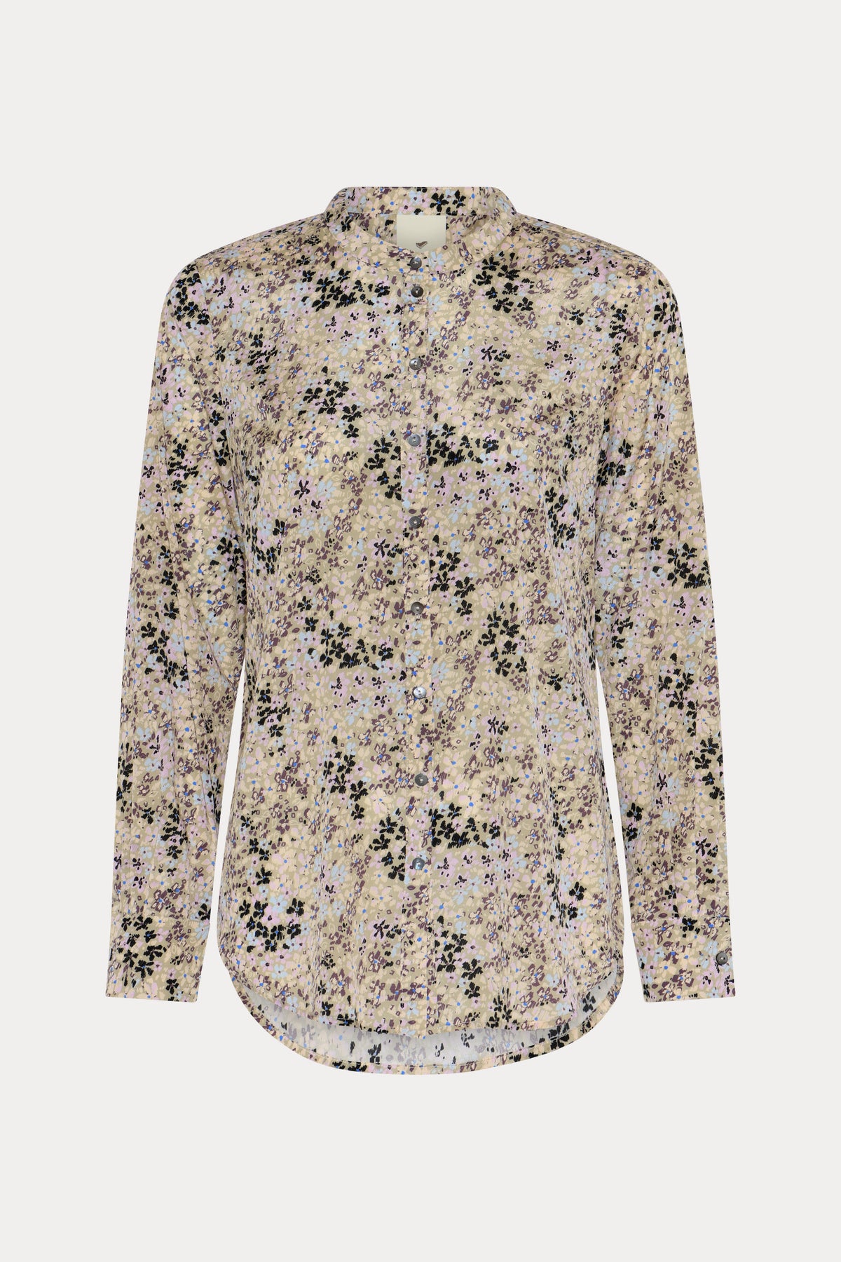 651HMMaple skjorte er en let, lige skjorte med stående krave, afrundet kant og et fint, tæt blomsterprint, der giver et roligt, detaljeret udtryk.