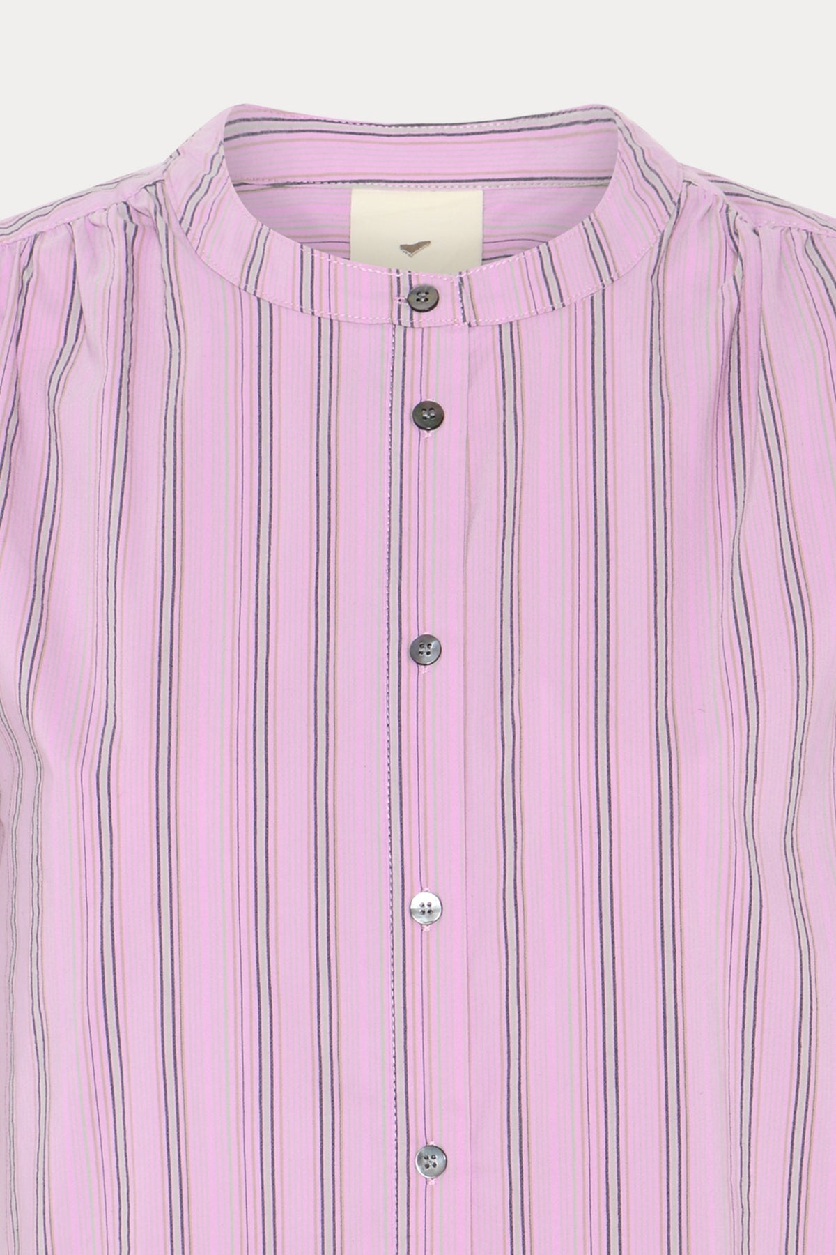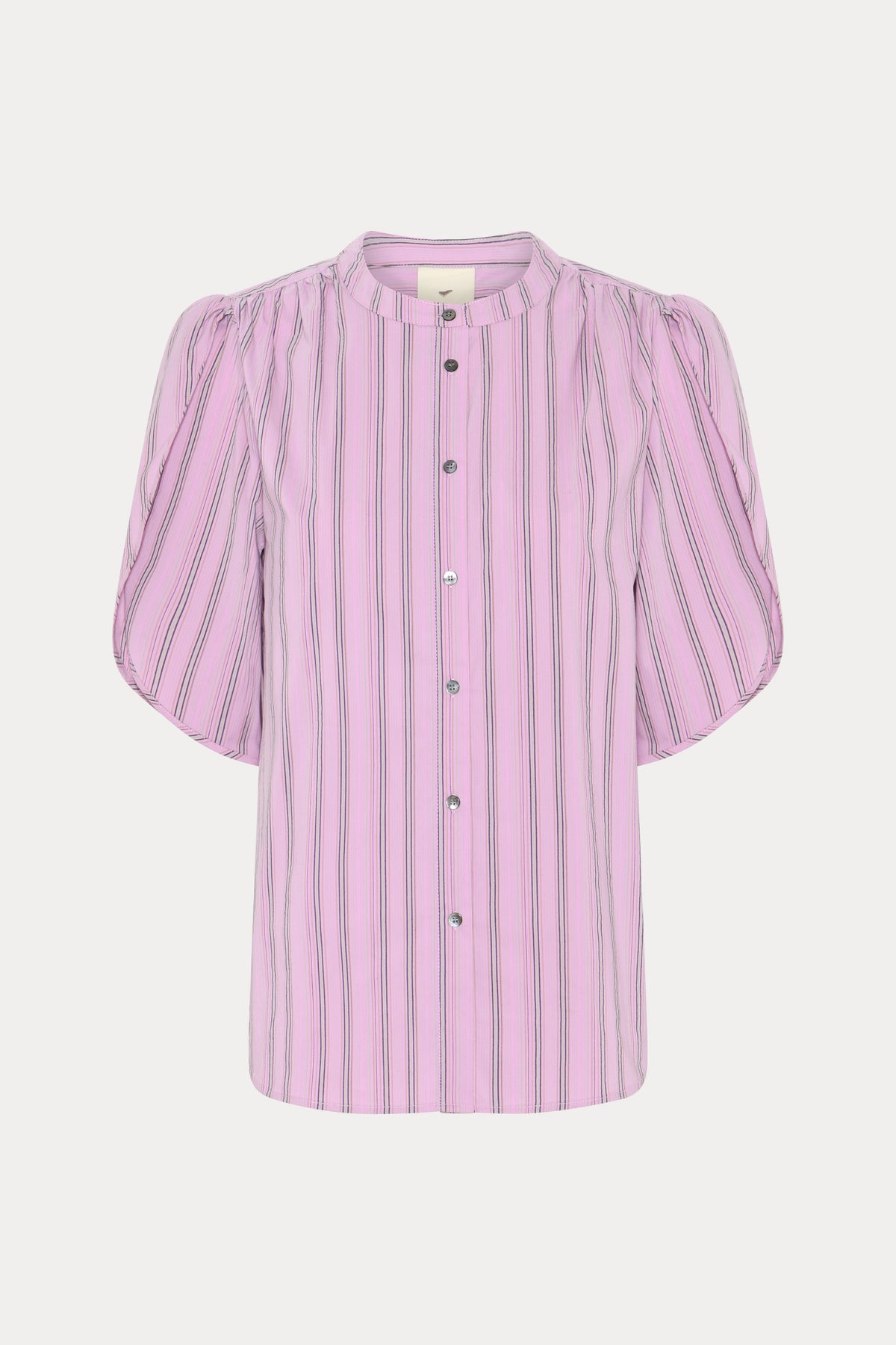 448HMTulin skjorte er en let bomuldsskjorte med rund hals, knaplukning og voluminøse ærmer med åbne slidser. De fine striber tilfører et frisk og feminint udtryk.