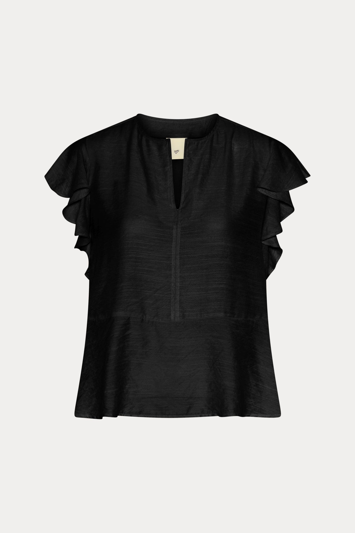 - Lightweight, breathable material - Ruffle sleeves - A-shaped cut - Keyhole neckline at the front - Iconic Heartmade heart at the neck, created in sparkling rhinestones