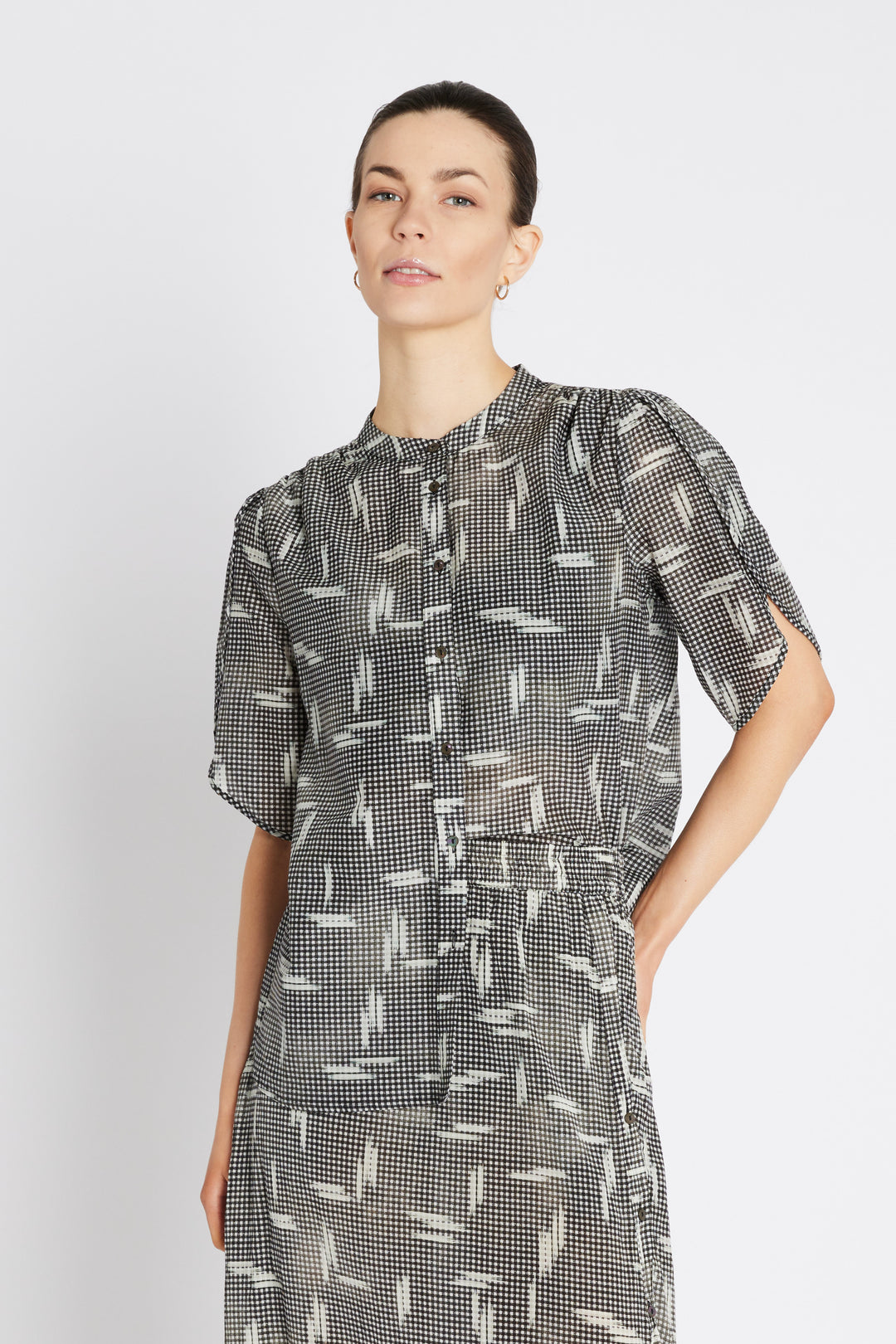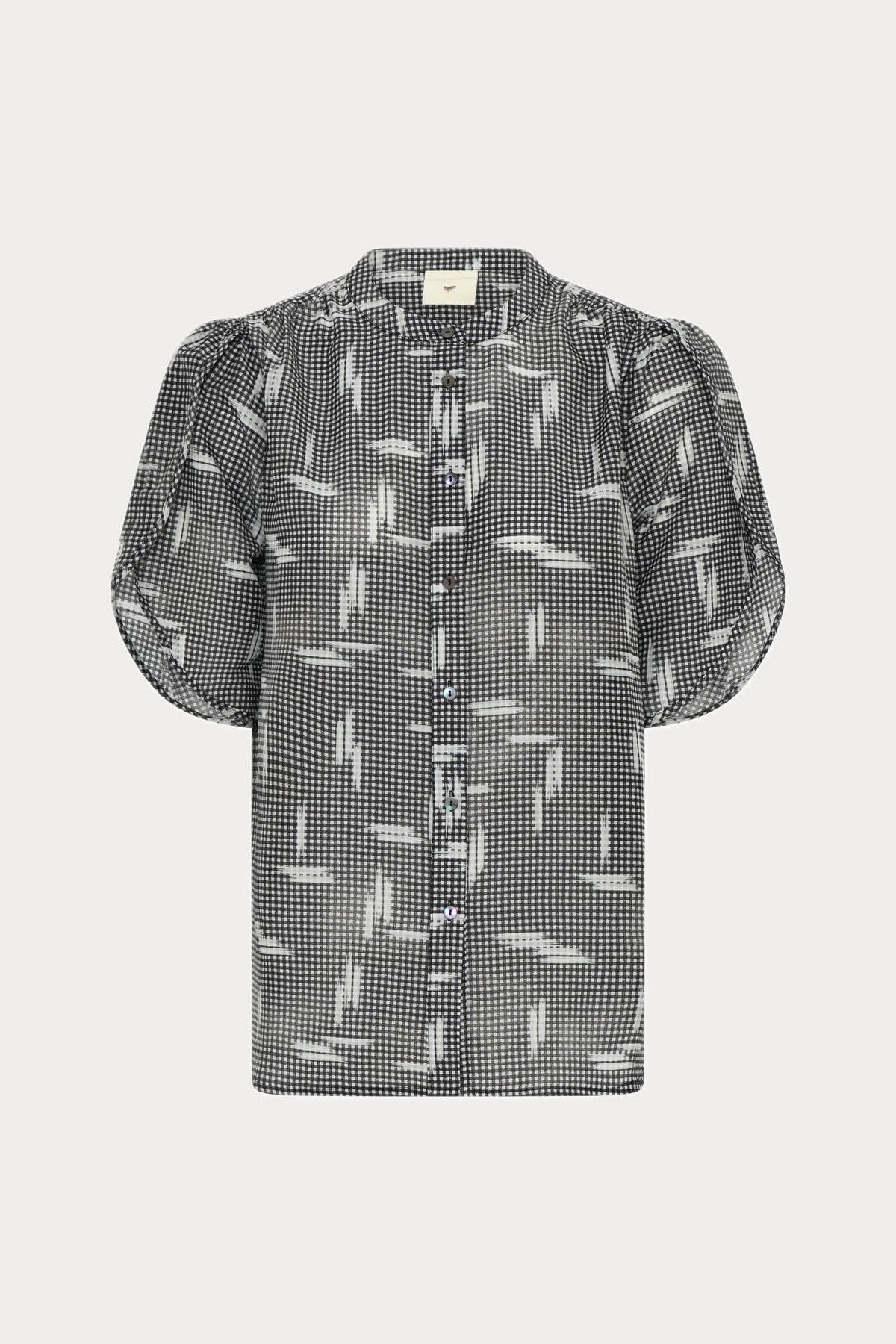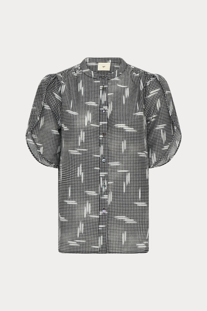 HM620Tulin toppen har et feminint udtryk med fine rynkedetaljer ved ryg og skuldre, der skaber et let og elegant fald.